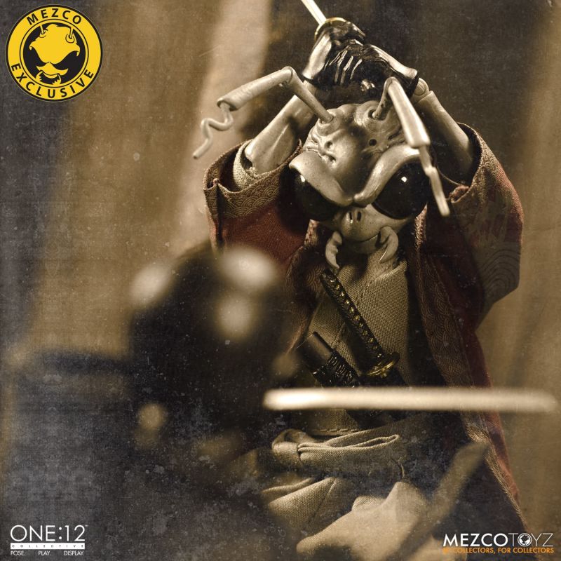 The One:12 Collective Gomez: Lone Roach is outfitted in a kimono, hakama, removable waist belt, and removable haori. A swordsman of inter-dimensional legend, Gomez comes complete with both a short and long katana with sheaths that tuck neatly into his waist belt, and a Zip Sword and sheath with cross-body strap. Gomez is never without his boom box sidekick, Boom Boom, which is customizable via an included sticker sheet.