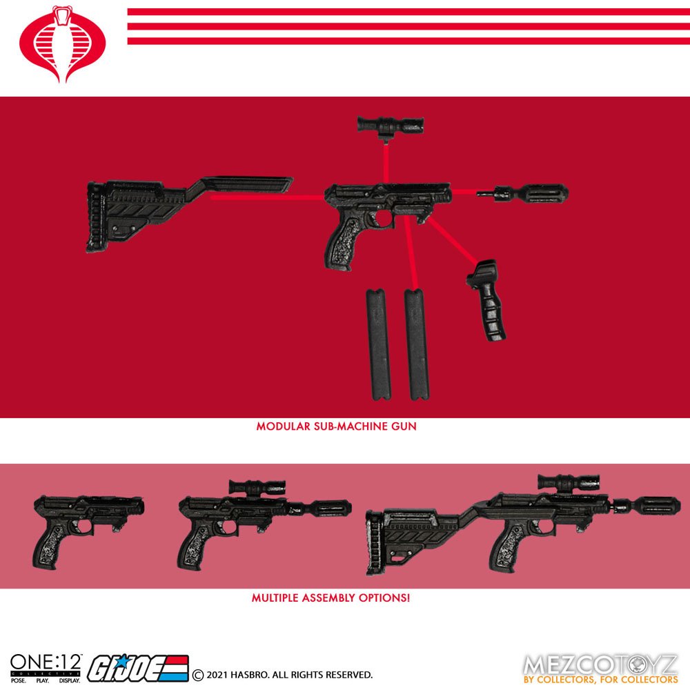 The One:12 Collective Destro is presented in his classic tactical outfit with tech enhancements, gauntlets with missile blasters, interchangeable thigh holsters, and combat boots. Destro features three masked head portraits, sporting his iconic beryllium steel mask and includes his necklace with amulet.