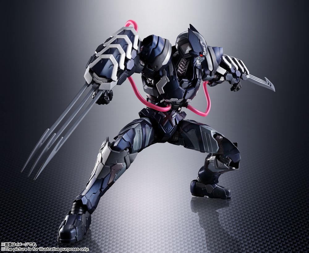 The newest villain in the TECH-ON AVENGERS series, Venom Symbiote Wolverine, joins S.H.Figuarts with diecast metal parts! Finished in metallic colors to accentuate the fusion of Wolverine with Venom, it features tube parts molded in translucent plastic, repulsor effects that can be used with other figures, and a stand that helps support dynamic poses, letting you re-create your favorite battle scenes!