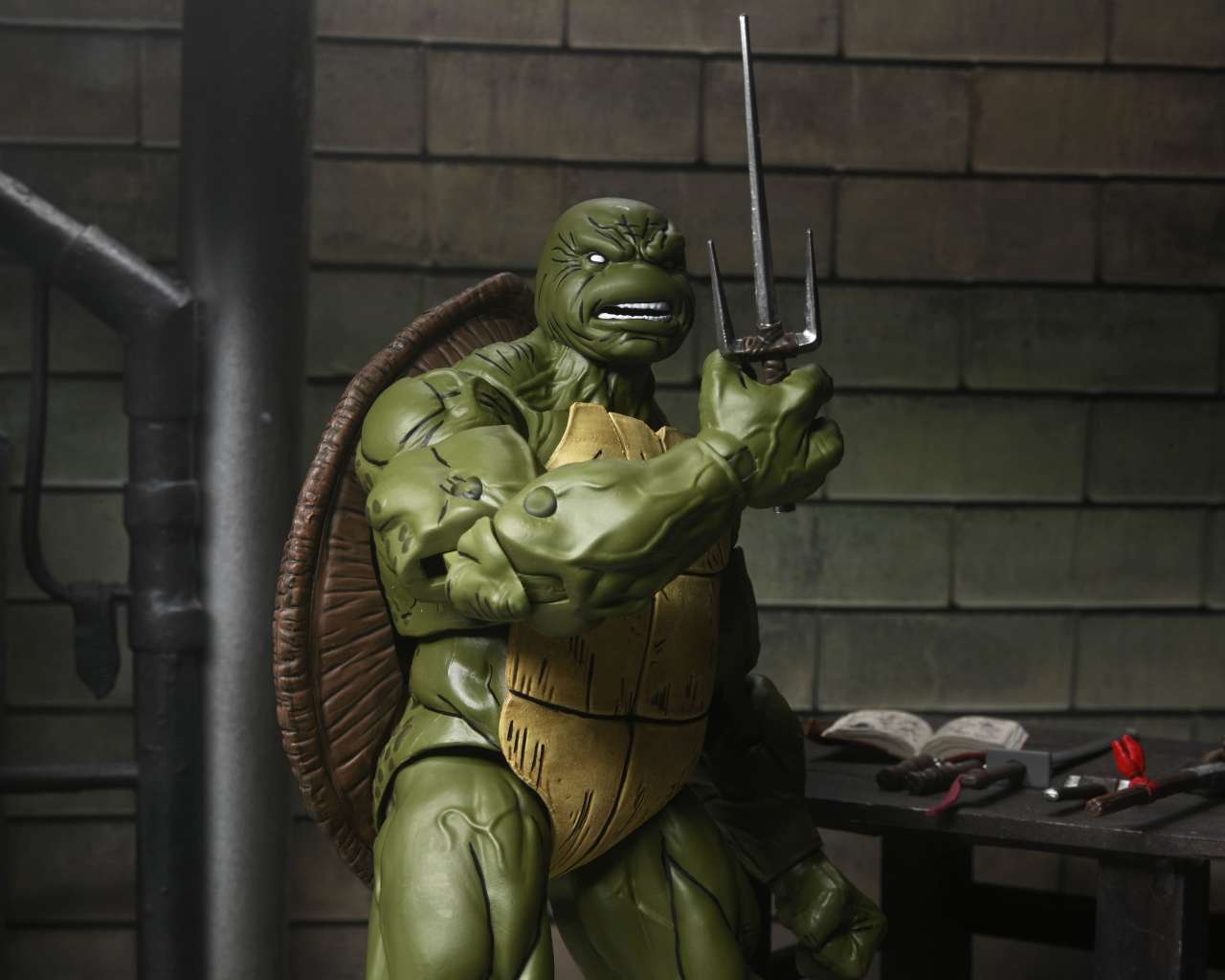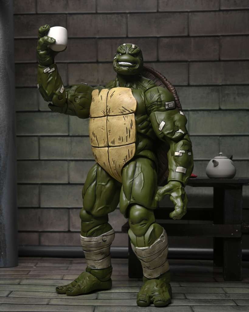 From the Teenage Mutant Ninja Turtles comic book series, The Last Ronin! In a future NYC far different than the one we know today, a lone surviving Turtle goes on a seemingly hopeless mission to obtain justice for his fallen family and friends. Standing in 7-inch scale, this battle-damaged Last Ronin action figure features an all-new sculpture and multiple customizing display options. It includes interchangeable arms, alternate heads, extra hands, all-new Splinter's diary, tea pot, and cup. Comes in collector-friendly window box packaging with opening flap featuring a custom illustration by The Last Ronin artist Ben Bishop.