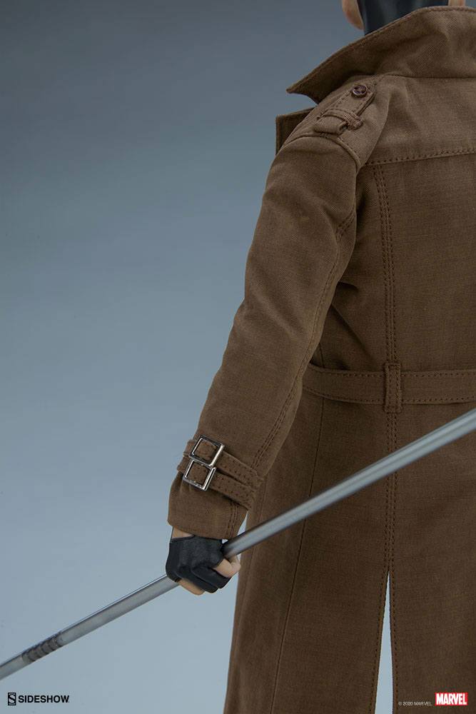 Inspired by his 90s era classic costume, the Gambit Deluxe Sixth Scale Figure features a detailed, cowled headsculpt based on Remy LeBeau's comic book appearance, complete with swappable short hair and long hair sculpts for differing display options. His costume includes a black fabric body suit with magenta squares on the sleeves and legs, and his signature style is completed with a carefully tailored brown trench coat. Gambit also wears sculpted upper body armor and silver armored boots, bringing his ragin' Cajun style off the page and onto your shelf.
